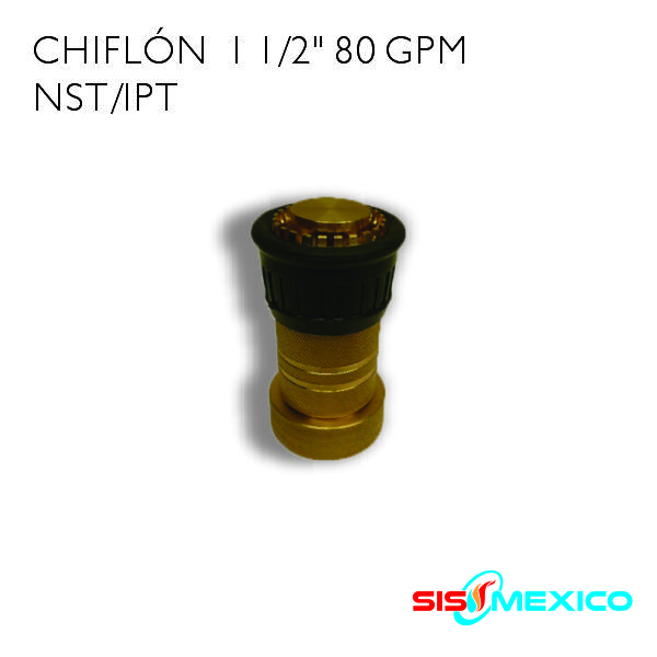 Boquilla para conectarse a manguera, contruida en bronce fundido en medidas de 1-1/2″ de 80 GPM, en cuerdas IPT o NST.