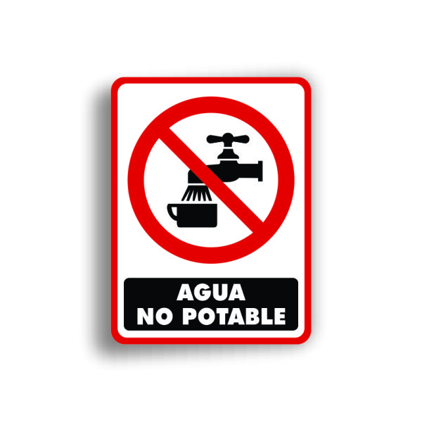 Señalamiento fondeado en vinil con leyenda «Agua no potable» en medidas de 35 x 50 cm, fabricado con Estireno cal. 40.