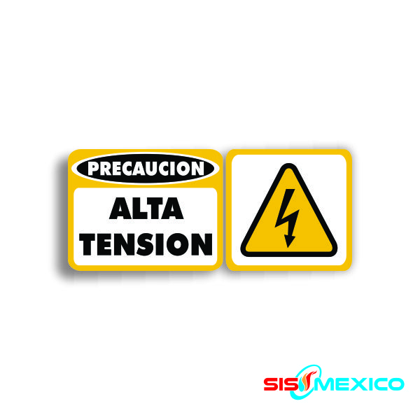Señalamiento fondeado en vinil con leyenda «Alta tensión» en medidas de 56 x 25 cm, fabricado con Estireno cal. 40.