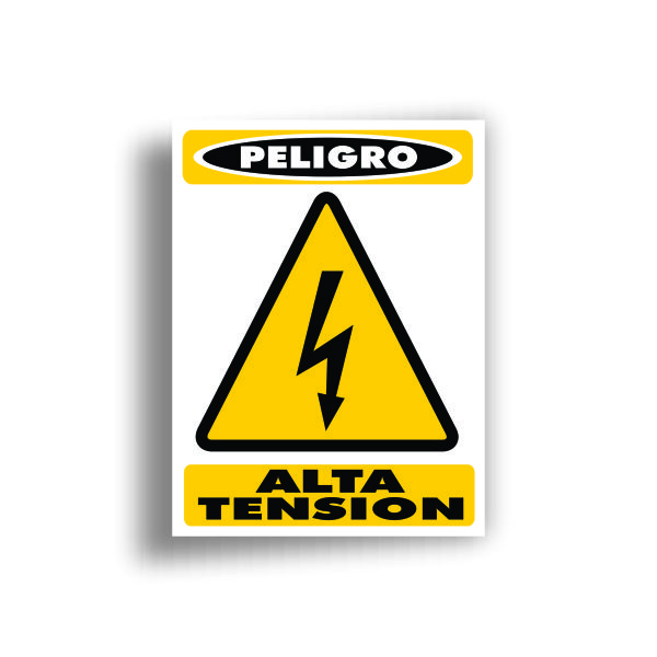 Señalamiento fondeado en vinil con leyenda «Alta tensión» en medidas de 30 x 35 cm, fabricado con Estireno cal. 40.