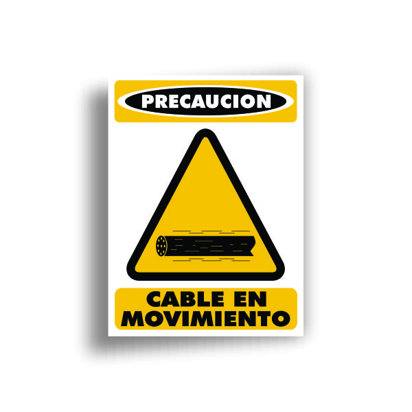 Señalamiento fondeado en vinil con leyenda «Cable en movimiento» en medidas de 35 x 50 cm, fabricado con Estireno cal. 40.