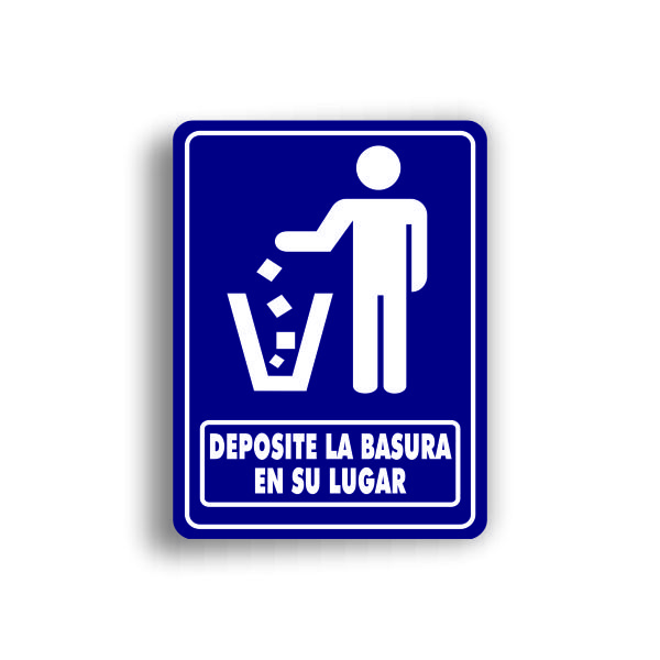 Señalamiento fondeado en vinil con leyenda «Deposite la basura en su lugar» en medidas de 35 x 50 cm, fabricado con Estireno cal. 40.