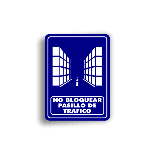Señalamiento fondeado en vinil con leyenda «No bloquear pasillo de trafico» en medidas de 35 x 50 cm, fabricado con Estireno cal. 40.