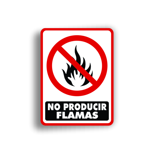 Señalamiento fondeado en vinil con leyenda «No producir flamas» en medidas de 30 x 35 cm, fabricado con Estireno cal. 40.