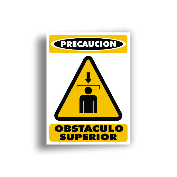 Señalamiento fondeado en vinil con leyenda «Obstáculo superior» en medidas de 30 x 35 cm, fabricado con Estireno cal. 40.