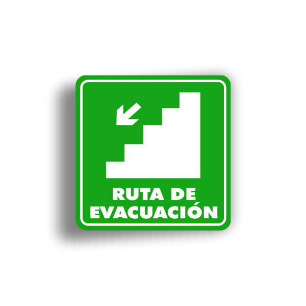 Señalamiento fondeado en vinil con leyenda «Ruta de evacuación arriba» en medidas de 30 x 35 cm, fabricado con Estireno cal. 40
