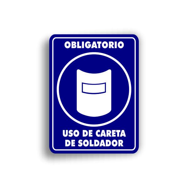 Señalamiento fondeado en vinil con leyenda «Uso de careta de soldador» en medidas de 30 x 35 cm, fabricado con Estireno cal. 40.