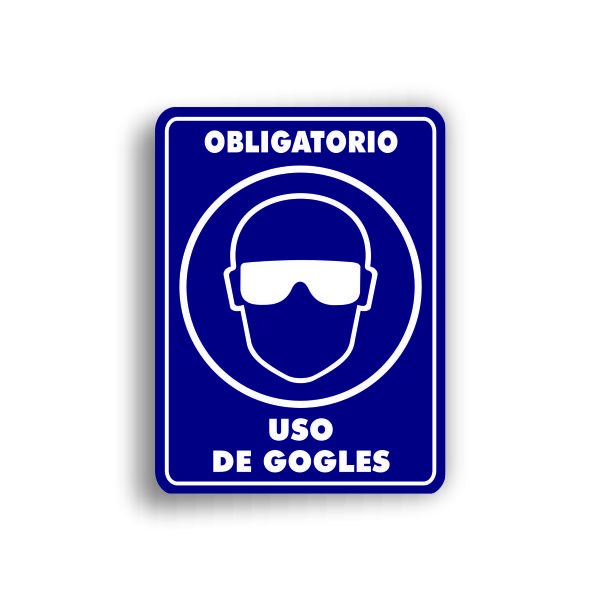 Señalamiento fondeado en vinil con leyenda «Uso de googles» en medidas de 35 x 50 cm, fabricado con Estireno cal. 40.