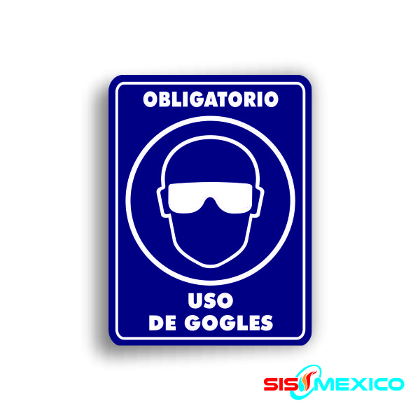 Señalamiento fondeado en vinil con leyenda «Uso de googles» en medidas de 30 x 35 cm, fabricado con Estireno cal. 40.
